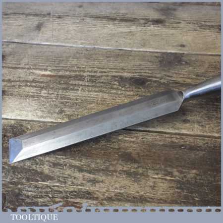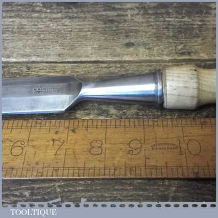 Vintage W. Marples & Sons carpenter’s socketed 1 ¼” bevel edge chisel with buffered ash handle in good used condition, fully refurbished sharpened and honed ready for use