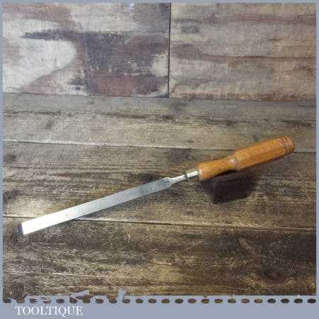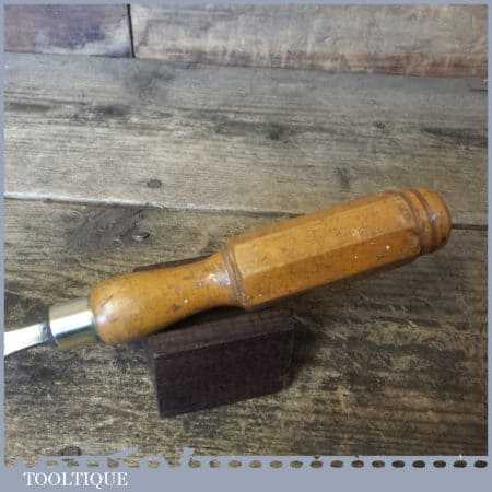 The chisel has been checked to ensure the tang is seated properly and the handle is solid and fit for use. All refurbished chisels are water cooled during the sharpening process to ensure the tempering is not affected. These old cast steel chisels are hand forged and far superior in quality because of the high carbon steel that was used which produces a keener edge, this was also generally used throughout the full length.