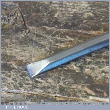 The chisel has been checked to ensure the tang is seated properly and the handle is solid and fit for use. All refurbished chisels are water cooled during the sharpening process to ensure the tempering is not affected. These old cast steel chisels are hand forged and far superior in quality because of the high carbon steel that was used which produces a keener edge, this was also generally used throughout the full length.