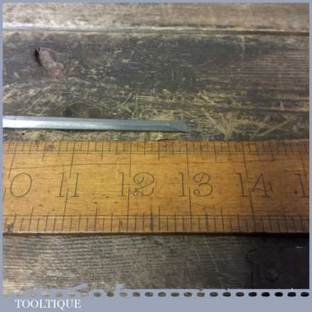 Vintage W. Marples & Sons pattern makers 1/4” bevel edge paring chisel with beechwood handle in good used condition, fully refurbished sharpened and honed ready for use. Note: some pitting higher up the blade but is good at the most important part where length is required. Hence Price