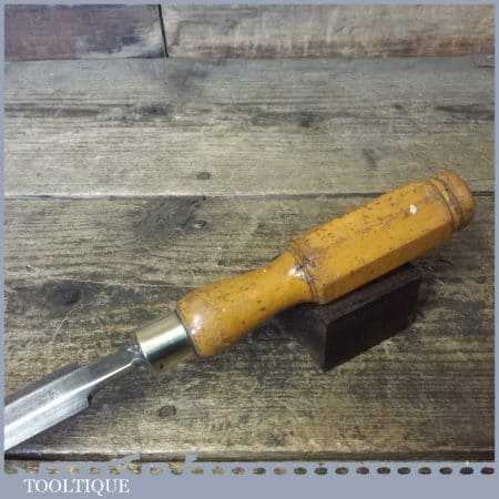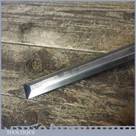 The chisel has been checked to ensure the tang is seated properly and the handle is solid and fit for use. All refurbished chisels are water cooled during the sharpening process to ensure the tempering is not affected. These old cast steel chisels are hand forged and far superior in quality because of the high carbon steel that was used which produces a keener edge, this was also generally used throughout the full length.