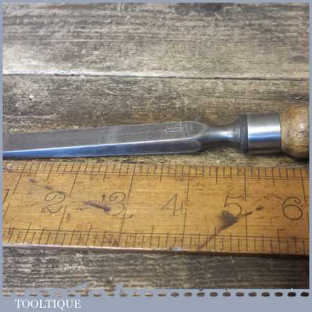 The chisel has been checked to ensure the tang is seated properly and the handle is solid and fit for use. All refurbished chisels are water cooled during the sharpening process to ensure the tempering is not affected. These old cast steel chisels are hand forged and far superior in quality because of the high carbon steel that was used which produces a keener edge, this was also generally used throughout the full length.