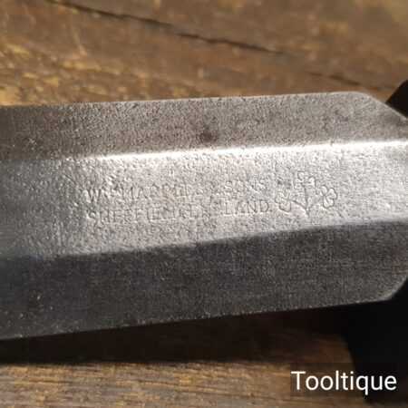 Vintage W. Marples & Sons Shamrock carpenter’s 1 ¼” bevel edge chisel with shatterproof plastic handle in good used condition, fully refurbished, sharpened and honed ready for use. The earliest type made in Sheffield.