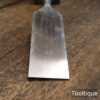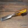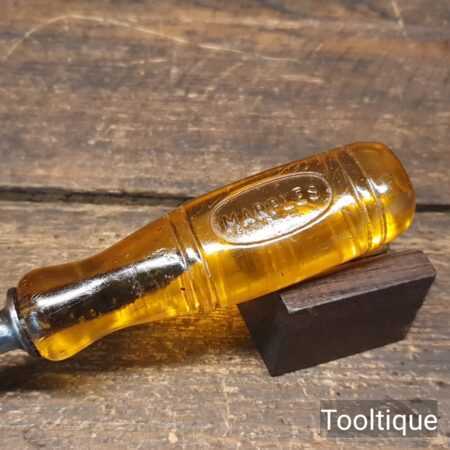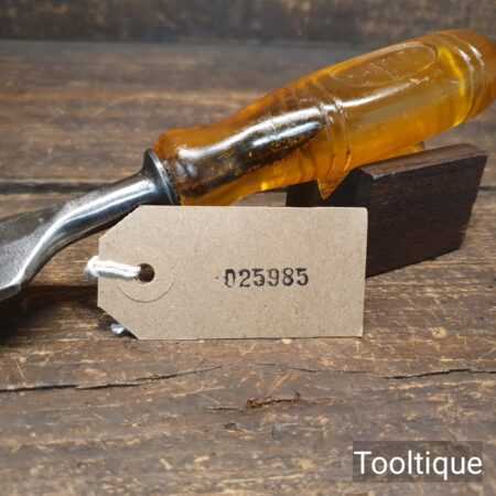 The chisel has been checked to ensure the tang is seated properly and the handle is solid and fit for use. All refurbished chisels are water cooled during the sharpening & flattening process to ensure the tempering is not affected