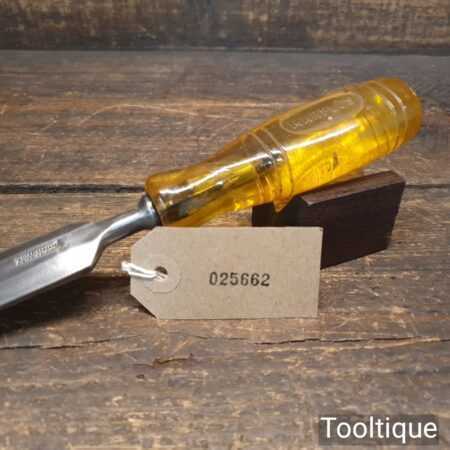 The chisel has been checked to ensure the tang is seated properly and the handle is solid and fit for use. All refurbished chisels are water cooled during the sharpening & flattening process to ensure the tempering is not affected