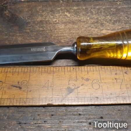 Vintage W. Marples & Sons Shamrock carpenter’s 1” bevel edge chisel with shatterproof in good used condition, fully refurbished sharpened and honed ready for use. Early Sheffield made type with superior steel.