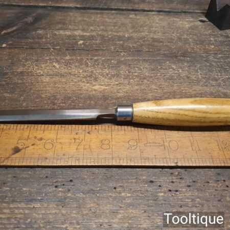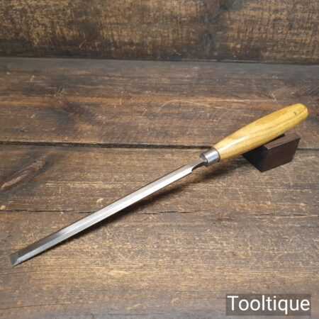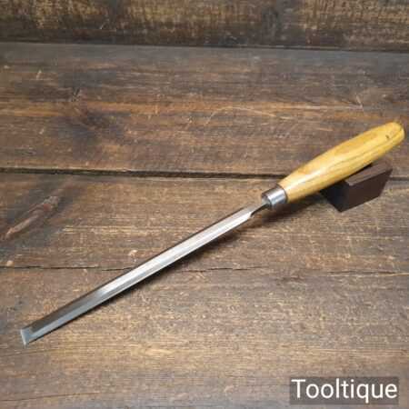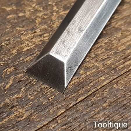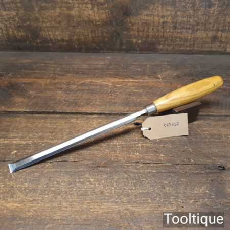 The chisel has been checked to ensure the tang is seated properly and the handle is solid and fit for use. All refurbished chisels are water cooled during the sharpening & flattening process to ensure the tempering is not affected