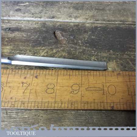 The chisel has been checked to ensure the tang is seated properly and the handle is solid and fit for use. All refurbished chisels are water cooled during the sharpening process to ensure the tempering is not affected. These old cast steel chisels are hand forged and far superior in quality because of the high carbon steel that was used which produces a keener edge, this was also generally used throughout the full length.