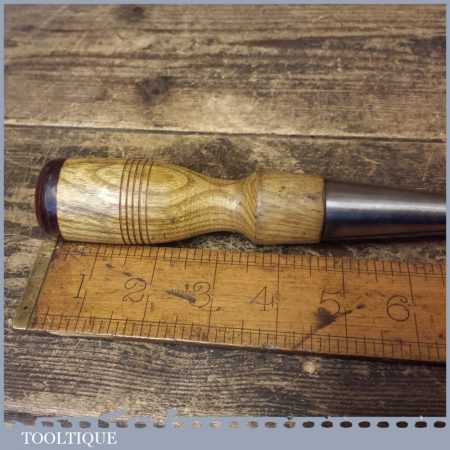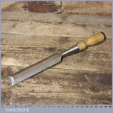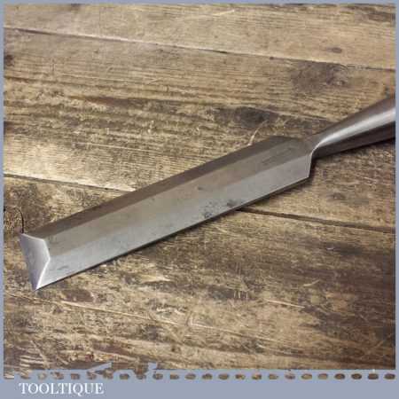 The chisel has been checked to ensure the tang is seated properly and the handle is solid and fit for use. All refurbished chisels are water cooled during the sharpening process to ensure the tempering is not affected. These old cast steel chisels are hand forged and far superior in quality because of the high carbon steel that was used which produces a keener edge, this was also generally used throughout the full length.