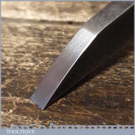 The chisel has been checked to ensure the tang is seated properly and the handle is solid and fit for use. All refurbished chisels are water cooled during the sharpening process to ensure the tempering is not affected.