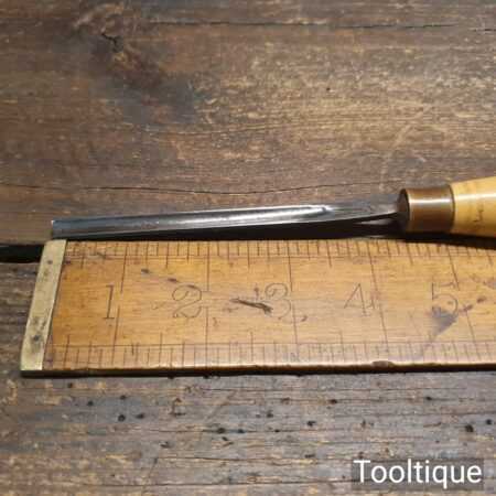 Vintage W. Marples & Sons 1/4” straight wood carving gouge chisel with boxwood handle in good used condition, fully refurbished sharpened and honed ready for use. The chisel has been checked to ensure the tang is seated properly and the handle is solid and fit for use. All refurbished chisels are water cooled during the sharpening process to ensure the tempering is not affected.