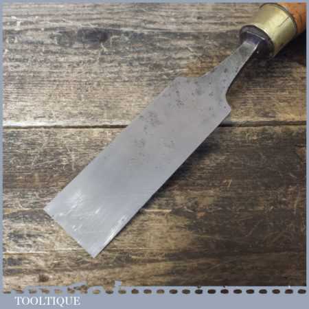 The chisel has been checked to ensure the tang is seated properly and the handle is solid and fit for use. All refurbished chisels are water cooled during the sharpening process to ensure the tempering is not affected. These old cast steel chisels are hand forged and far superior in quality because of the high carbon steel that was used which produces a keener edge, this was also generally used throughout the full length.