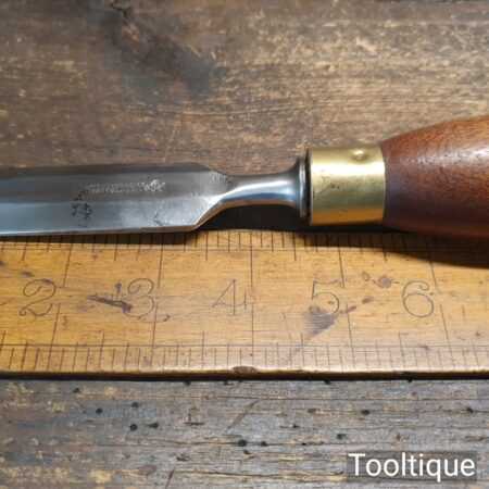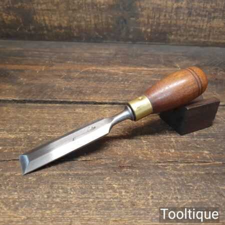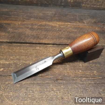 The chisel has been checked to ensure the tang is seated properly and the handle is solid and fit for use. All refurbished chisels are water cooled during the sharpening & flattening process to ensure the tempering is not affected