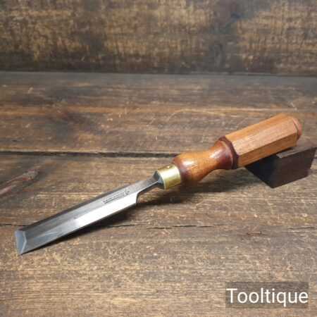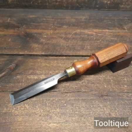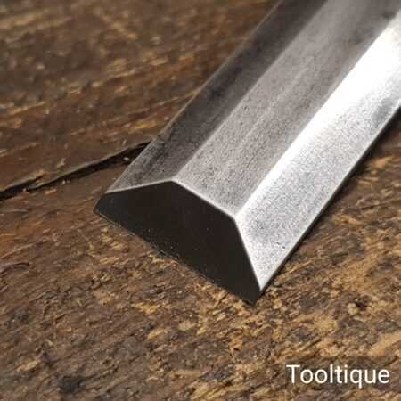 The chisel has been checked to ensure the tang is seated properly and the handle is solid and fit for use. All refurbished chisels are water cooled during the sharpening & flattening process to ensure the tempering is not affected