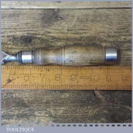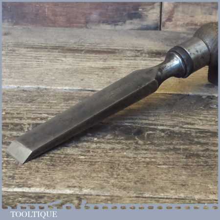 The chisel has been checked to ensure the tang is seated properly and the handle is solid and fit for use. All refurbished chisels are water cooled during the sharpening process to ensure the tempering is not affected. These old cast steel chisels are hand forged and far superior in quality because of the high carbon steel that was used which produces a keener edge, this was also generally used throughout the full length.