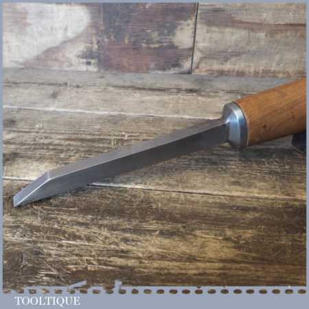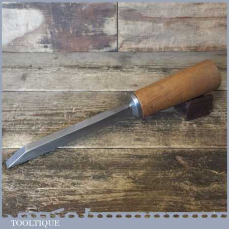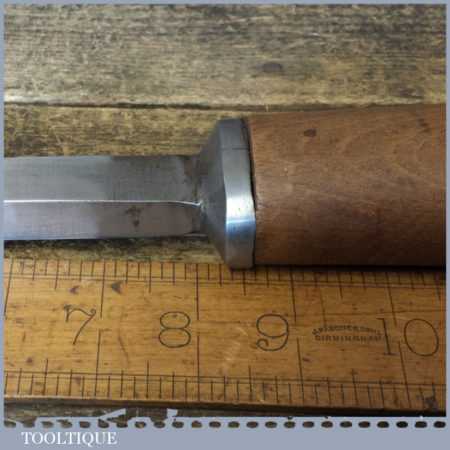 The chisel has been checked to ensure the tang is seated properly and the handle is solid and fit for use. All refurbished chisels are water cooled during the sharpening process to ensure the tempering is not affected. These old cast steel chisels are hand forged and far superior in quality because of the high carbon steel that was used which produces a keener edge, this was also generally used throughout the full length.
