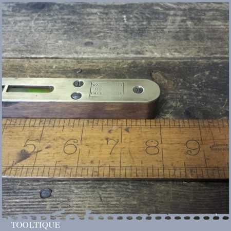 Vintage W. Marples & Sons 8” mahogany and brass spirit level in good used condition. Note: the level hasn’t been tested and may require resetting in putty if intended for use.