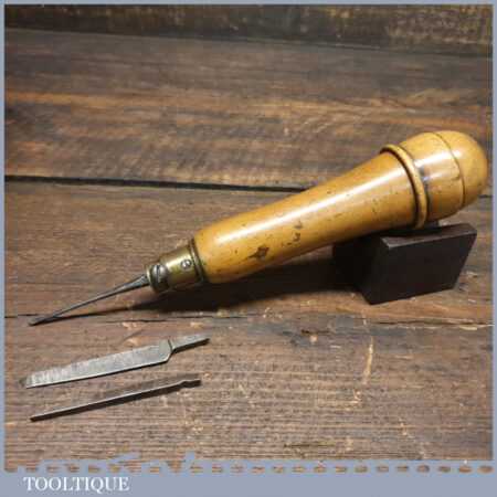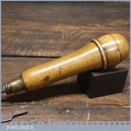 Vintage W. Marples & Sons boxwood handled multi-tool with 3 attachments encased in the screw top handle, in good used condition.