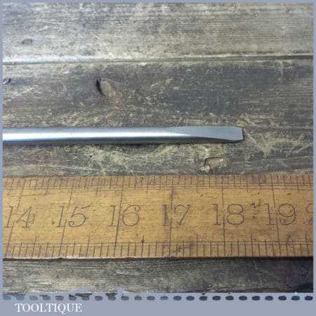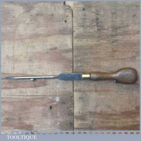 Vintage W. Marples & Sons cabinet maker’s 18 ½” turnscrew screwdriver with beechwood handle and approx a 3/8” tip in good used condition. This has been water cooled during the reshaping process to ensure it retains its original tempering and will work as it would have originally.
