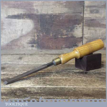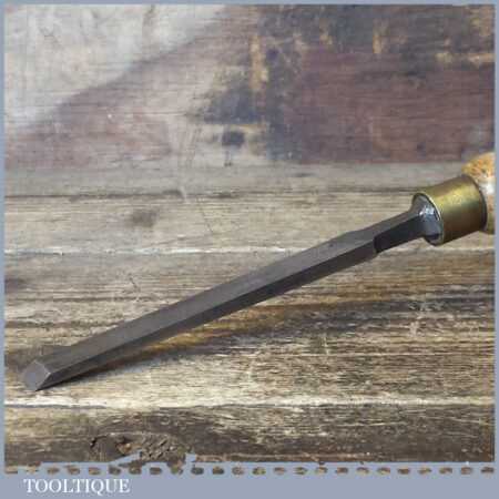 The chisel has been checked to ensure the tang is seated properly and the handle is solid and fit for use. All refurbished chisels are water cooled during the sharpening process to ensure the tempering is not affected. These old cast steel chisels are hand forged and far superior in quality because of the high carbon steel that was used which produces a keener edge, this was also generally used throughout the full length.