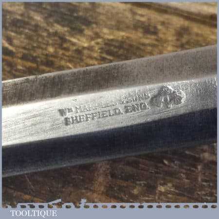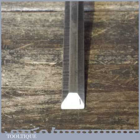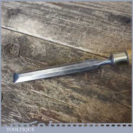 The chisel has been checked to ensure the tang is seated properly and the handle is solid and fit for use. All refurbished chisels are water cooled during the sharpening process to ensure the tempering is not affected. These old cast steel chisels are hand forged and far superior in quality because of the high carbon steel that was used which produces a keener edge, this was also generally used throughout the full length.