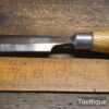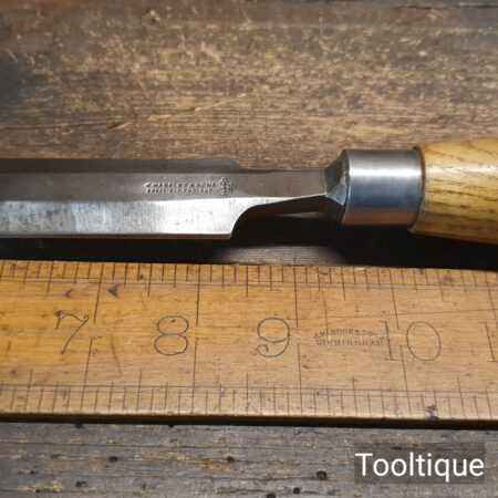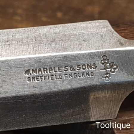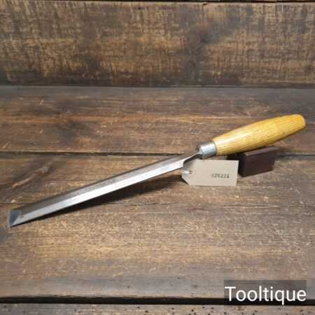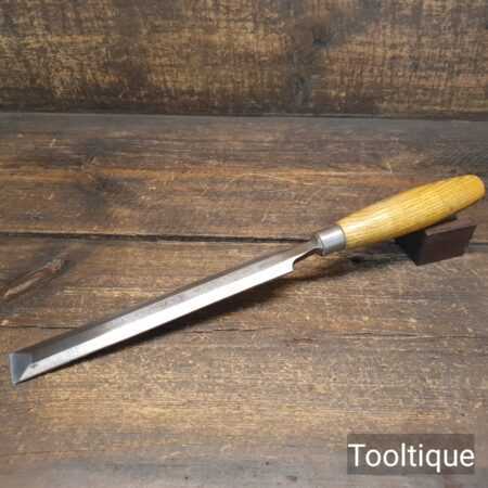 The chisel has been checked to ensure the tang is seated properly and the handle is solid and fit for use. All refurbished chisels are water cooled during the sharpening & flattening process to ensure the tempering is not affected