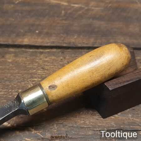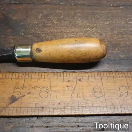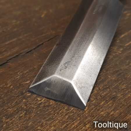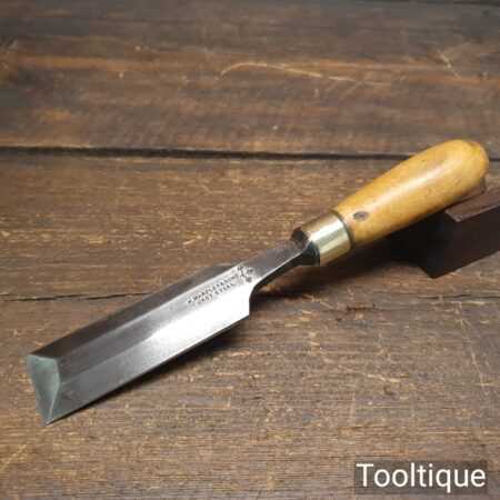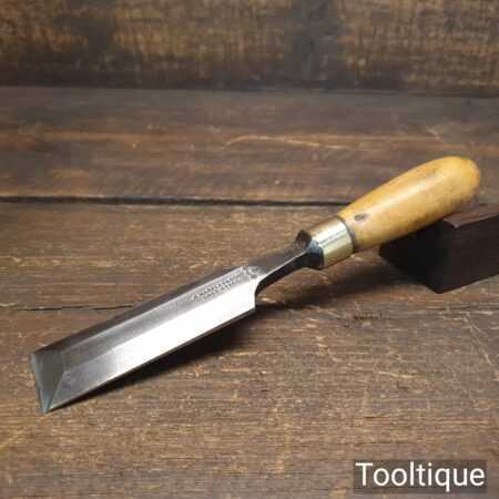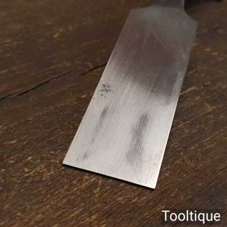 The chisel has been checked to ensure the tang is seated properly and the handle is solid and fit for use. All refurbished chisels are water cooled during the sharpening & flattening process to ensure the tempering is not affected.