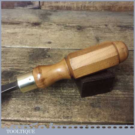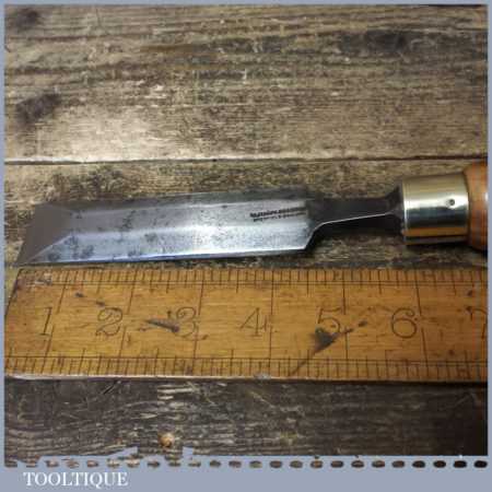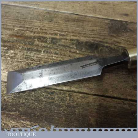 The chisel has been checked to ensure the tang is seated properly and the handle is solid and fit for use. All refurbished chisels are water cooled during the sharpening process to ensure the tempering is not affected. These old cast steel chisels are hand forged and far superior in quality because of the high carbon steel that was used which produces a keener edge, this was also generally used throughout the full length.