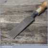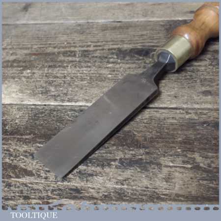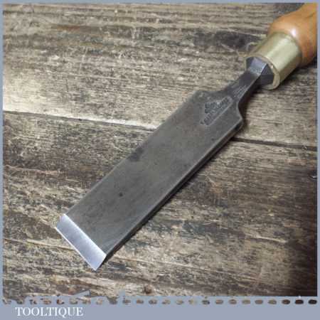The chisel has been checked to ensure the tang is seated properly and the handle is solid and fit for use. All refurbished chisels are water cooled during the sharpening process to ensure the tempering is not affected. These old cast steel chisels are hand forged and far superior in quality because of the high carbon steel that was used which produces a keener edge, this was also generally used throughout the full length