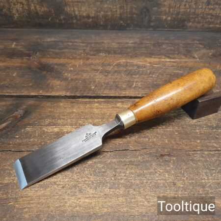 The chisel has been checked to ensure the tang is seated properly and the handle is solid and fit for use. All refurbished chisels are water cooled during the sharpening & flattening process to ensure the tempering is not affected.