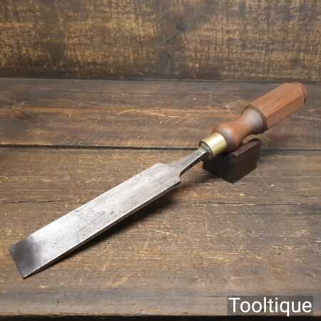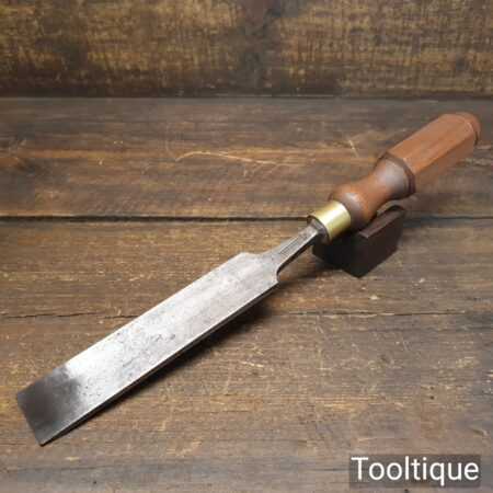 Vintage W. Marples & Sons carpenter’s 1 ⁷⁄₁₆” shallow gouge chisel with London pattern Mahogany handle in good used condition, fully refurbished sharpened and honed ready for use.