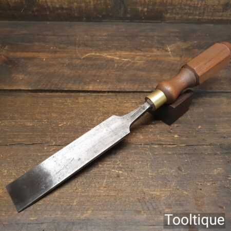 The chisel has been checked to ensure the tang is seated properly and the handle is solid and fit for use. All refurbished chisels are water cooled during the sharpening process to ensure the tempering is not affected.