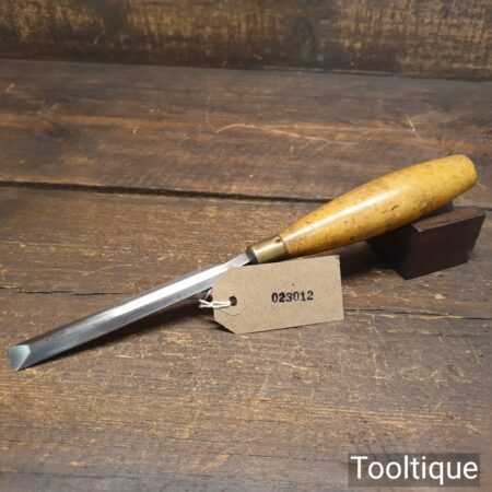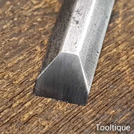 The chisel has been checked to ensure the tang is seated properly and the handle is solid and fit for use. All refurbished chisels are water cooled during the sharpening process to ensure the tempering is not affected.