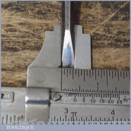 The chisel has been checked to ensure the tang is seated properly and the handle is solid and fit for use. All refurbished chisels are water cooled during the sharpening process to ensure the tempering is not affected. These old cast steel chisels are hand forged and far superior in quality because of the high carbon steel that was used which produces a keener edge, this was also generally used throughout the full length.
