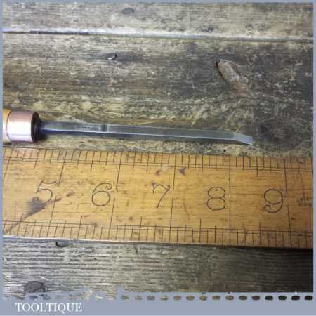 The chisel has been checked to ensure the tang is seated properly and the handle is solid and fit for use. All refurbished chisels are water cooled during the sharpening process to ensure the tempering is not affected. These old cast steel chisels are hand forged and far superior in quality because of the high carbon steel that was used which produces a keener edge, this was also generally used throughout the full length.