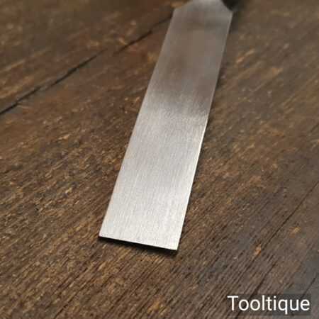 The chisel has been checked to ensure the tang is seated properly and the handle is solid and fit for use. All refurbished chisels are water cooled during the sharpening process to ensure the tempering is not affected.