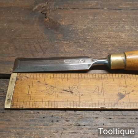 Vintage W. Marples & Sons carpenter’s 3/4” bevel edge chisel with boxwood handle in good used condition, fully refurbished sharpened and honed ready for use. Note: Re-handling crack near the ferule has been resin treated and is solid.