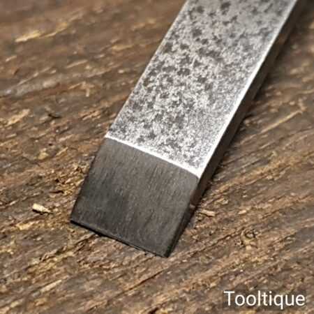 The chisel has been checked to ensure the tang is seated properly and the handle is solid and fit for use. All refurbished chisels are water cooled during the sharpening process to ensure the tempering is not affected.