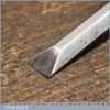 The chisel has been checked to ensure the tang is seated properly and the handle is solid and fit for use. All refurbished chisels are water cooled during the sharpening process to ensure the tempering is not affected.