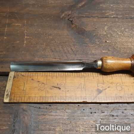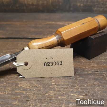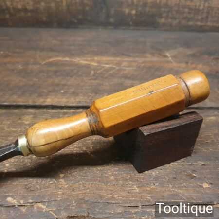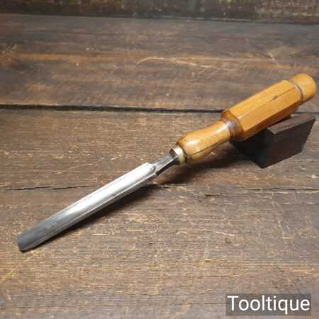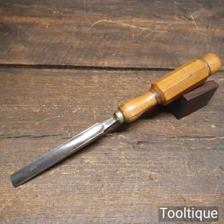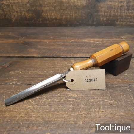 Vintage W. Marples & Sons carpenter’s 7/16” gouge chisel with London pattern boxwood handle in good used condition, fully refurbished sharpened and honed ready for use. Note: Old handling crack has been resin treated and is strong.