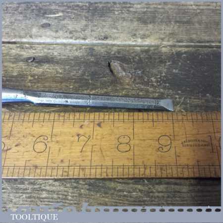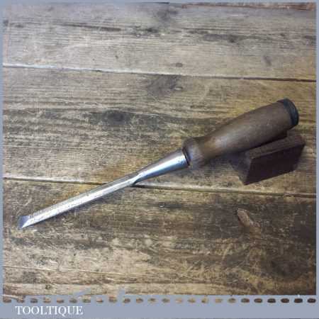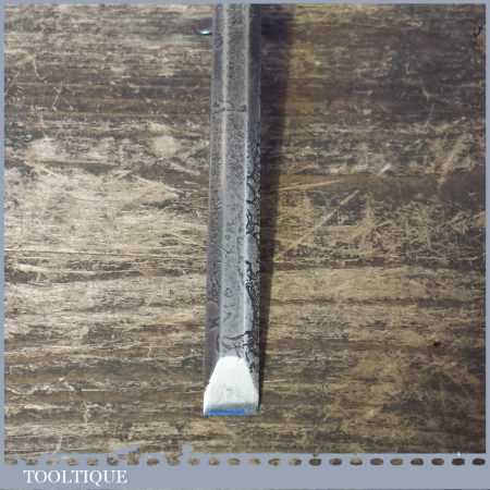 The chisel has been checked to ensure the tang is seated properly and the handle is solid and fit for use. All refurbished chisels are water cooled during the sharpening process to ensure the tempering is not affected. These old cast steel chisels are hand forged and far superior in quality because of the high carbon steel that was used which produces a keener edge, this was also generally used throughout the full length.