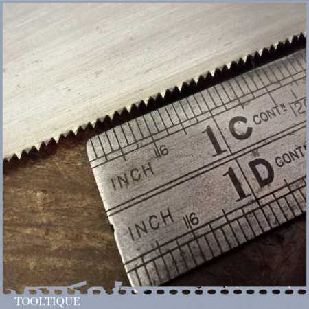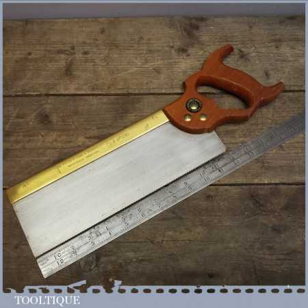 Vintage W. Tyzack and Sons & Turner No: 120 tenon saw measuring 12” in length and with 14 teeth per inch. It’s in very good condition and has been lightly used. The saw is straight and pretty sharp, although I always say a seasoned woodworker could always improve it.