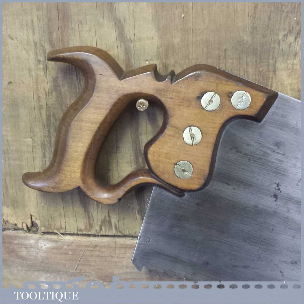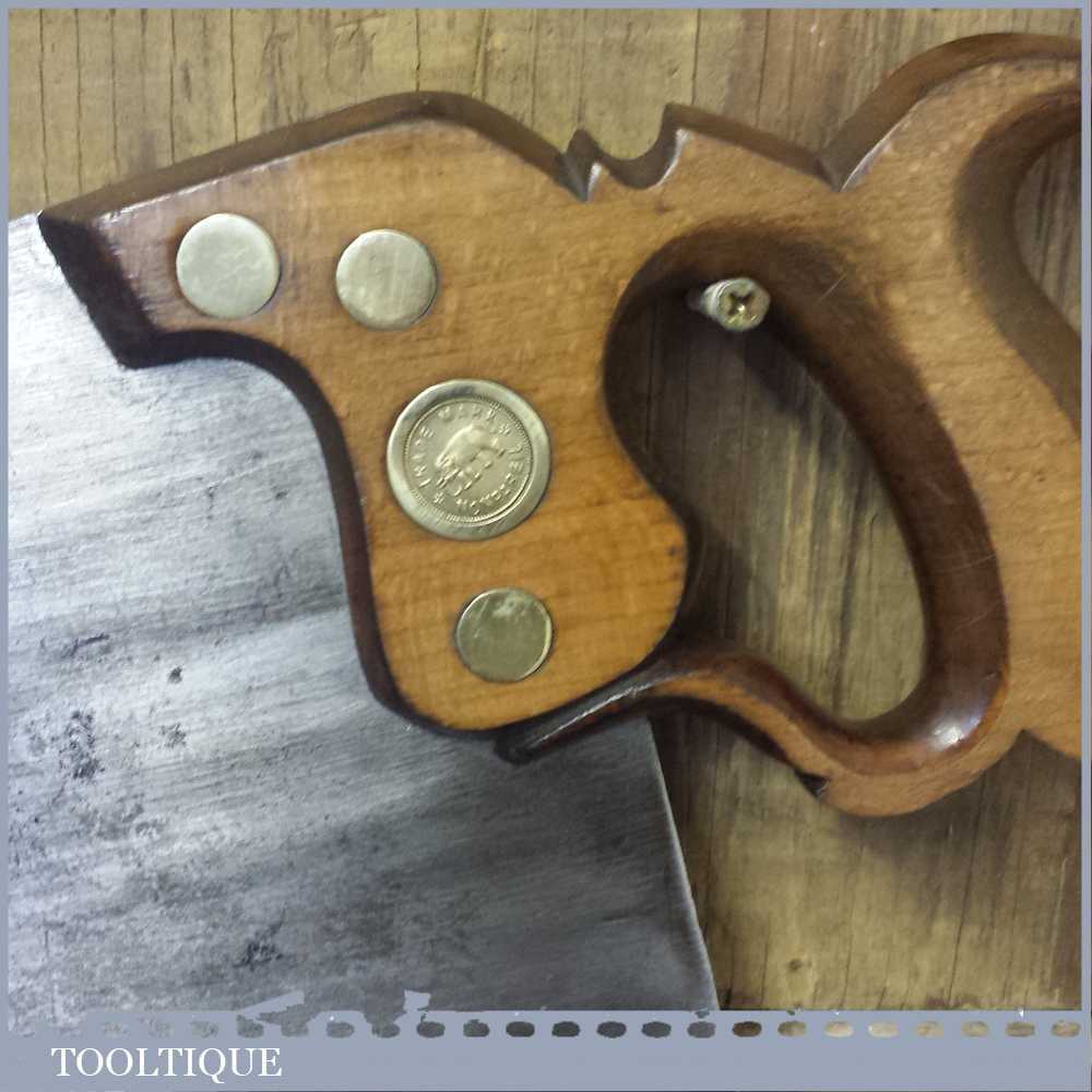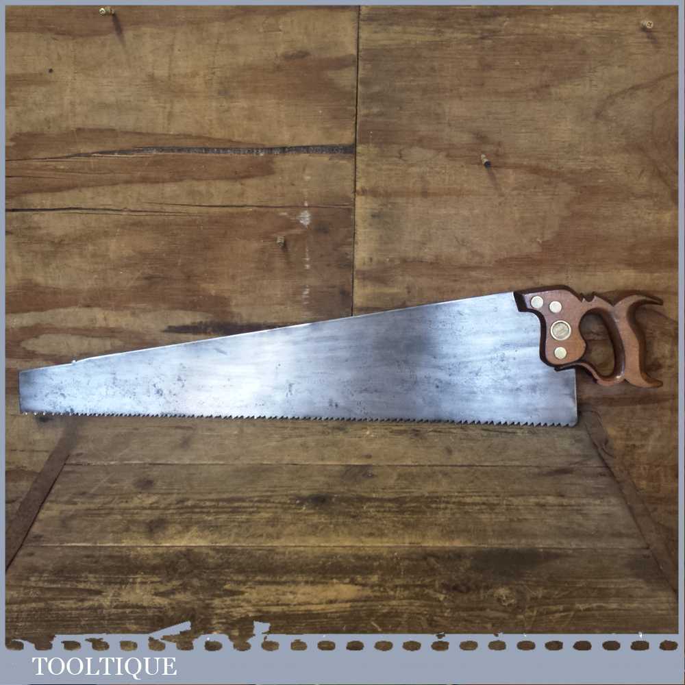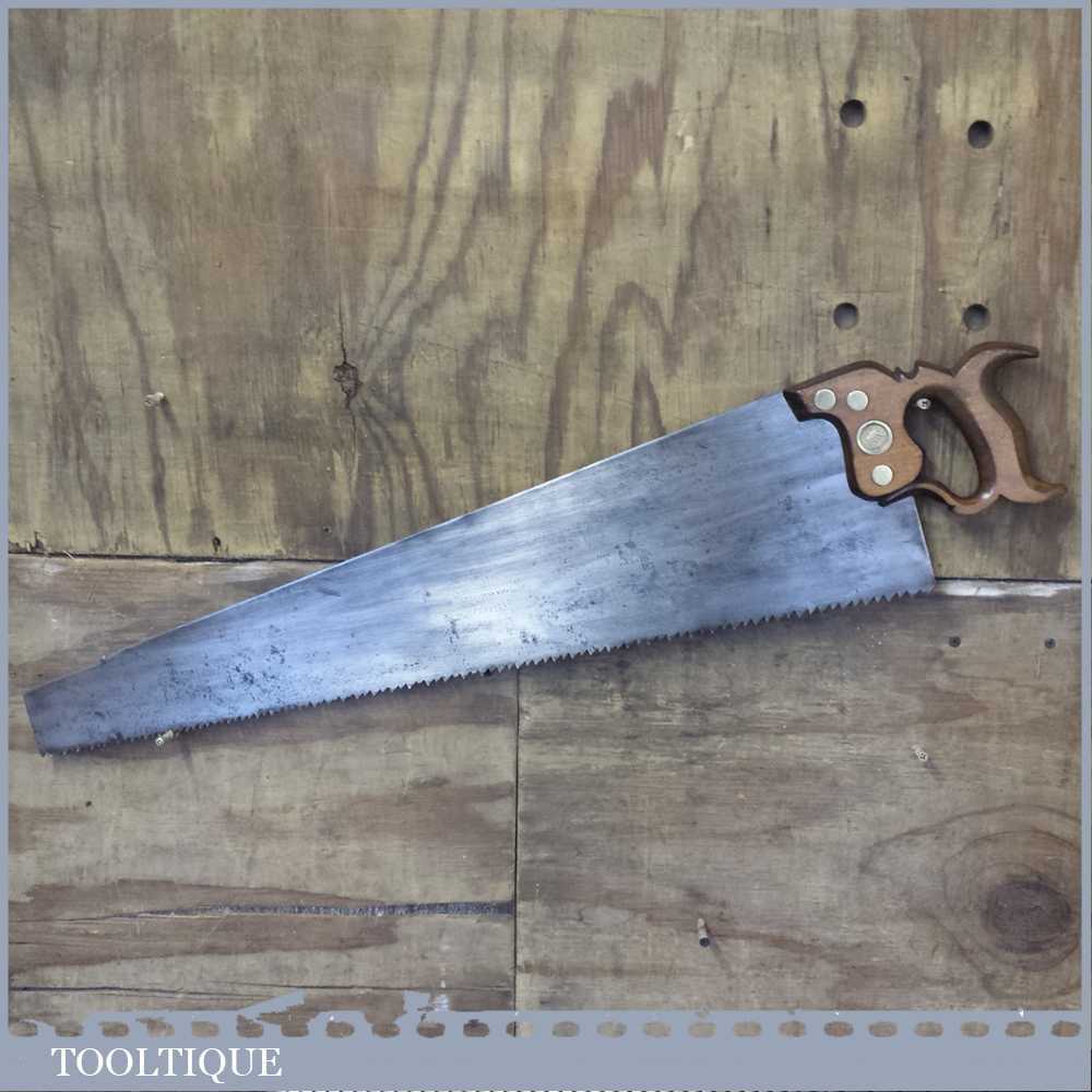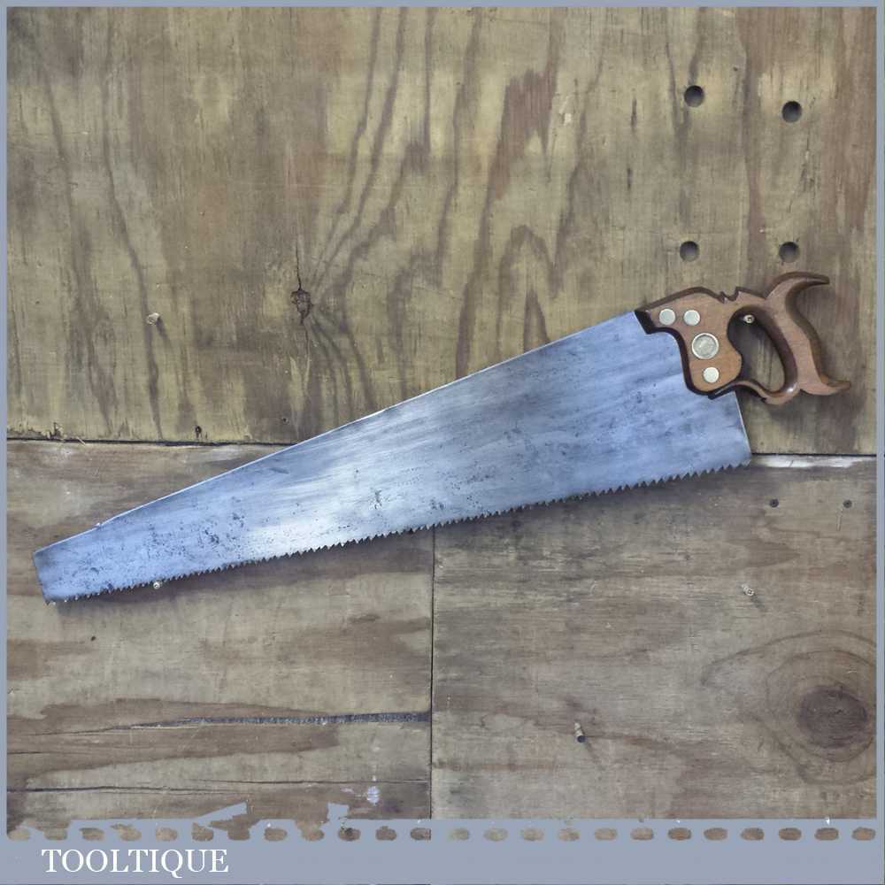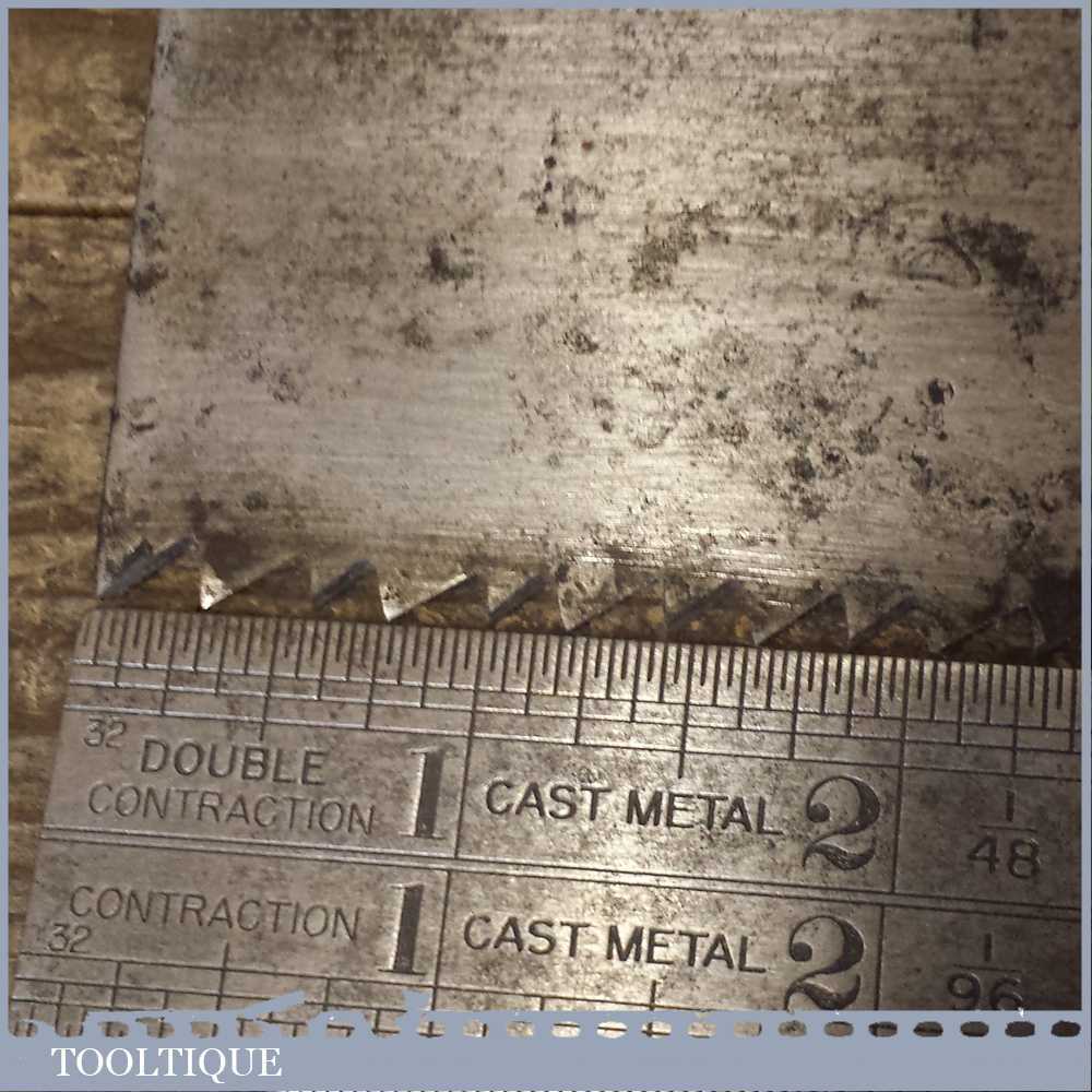 Vintage W Tyzack & Turner (Nonpareil) cross cut hand saw with 4-5 tpi which has been refurbished, sharpened & set ready for use. This saw certainly has quality steel and took some effort to sharpen it and it is straight and sharp and with a graduated tooth size with a beech wood handle. It’s a beautiful old Sheffield saw with good clear maker’s marks to the saw blade.