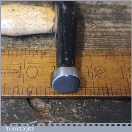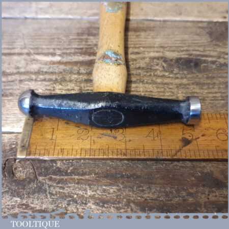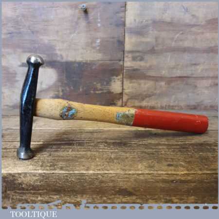Vintage William Whitehouse and Co (Atlas Forge) panel beaters ball pein planishing hammer with hickory handle, in good used condition. Note: The faces have a smooth mirror finish.