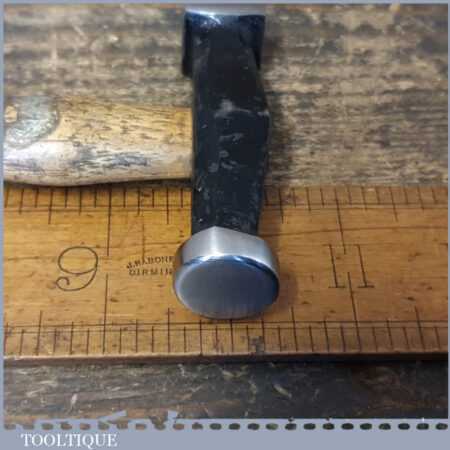 Vintage W. Whitehouse (Atlas Forge) panel beater’s round and square headed planishing hammer with hickory handle, in good used condition. Note: The faces have a smooth mirror finish.