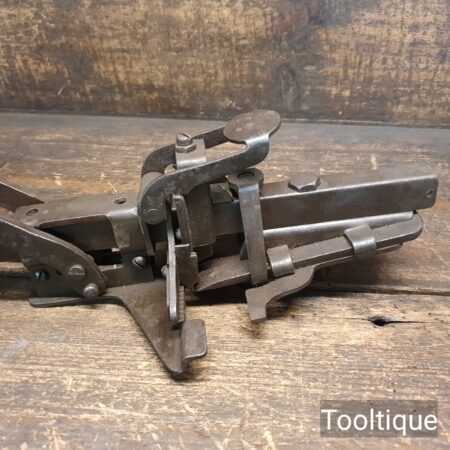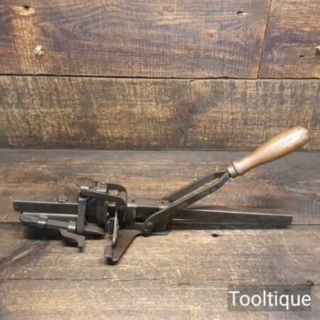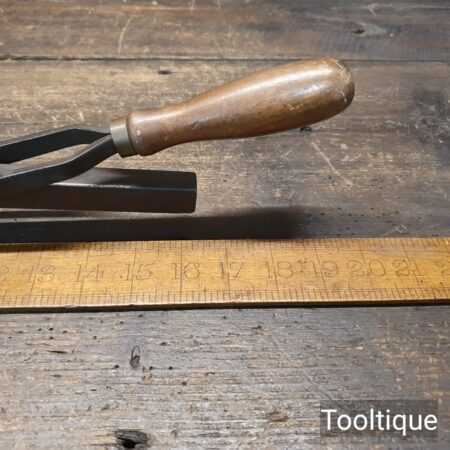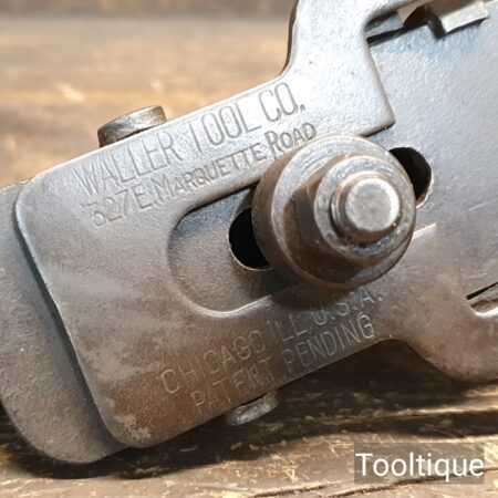 Vintage Waller USA Butt Morticing tool in good used condition. This has a serrated 1 3/4″ cutter and mortices in butt hinges on doors up to 3 1/2″ with a uniform depth. These had a patent pending and was a precursor to the Stanley No: 280.