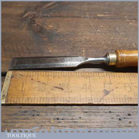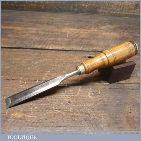 Vintage Wallins of Sweden carpenter’s 3/4″ bevel edge chisel with buffered beechwood handle in good used condition, fully refurbished sharpened and honed ready for use.