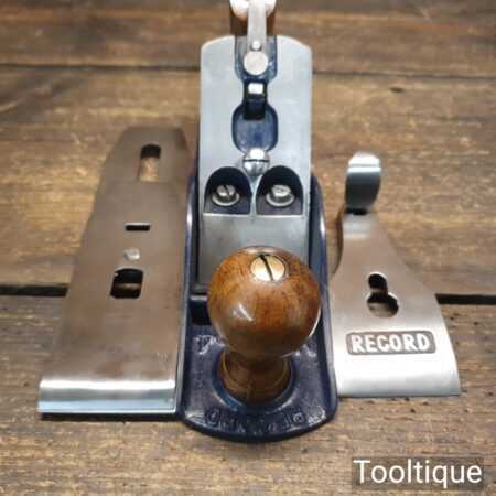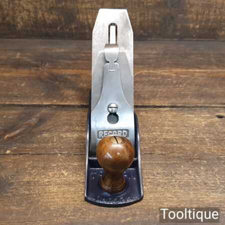 Vintage War Finish Record England No: 04 smoothing plane, fully refurbished and in good used condition, ready to use. Manufactured between 1939-45. Note: Front knob had a small crack which has been resin treated and filled.