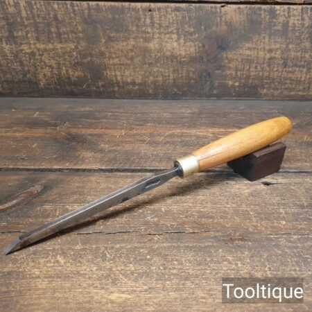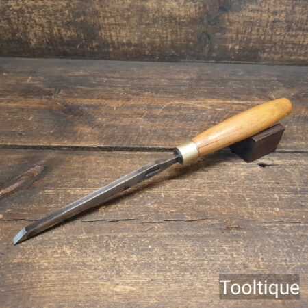 Vintage Ward ⁹⁄₃₂” mortice chisel with beechwood handle in good used condition, fully refurbished sharpened and honed ready for use. Note: Seating crack near brass ferule where it was rehandled, this has been resin treated.