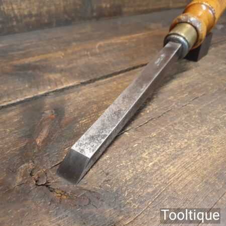 Vintage Ward & Payne ¾” Wide cast steel heavy duty mortice chisel with boxwood handle in good used condition, fully refurbished sharpened and honed ready for use. Rare to find these larger wider sizes.